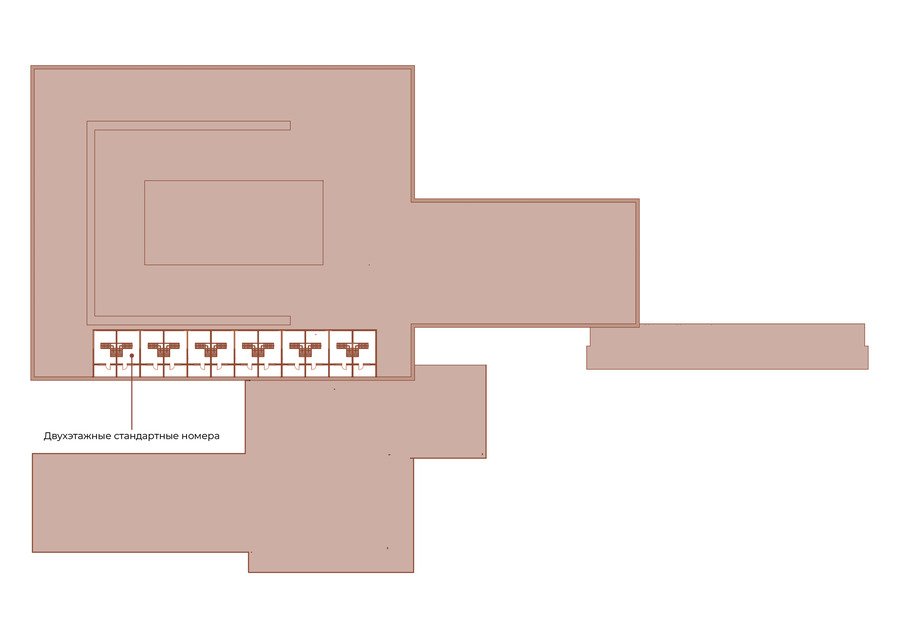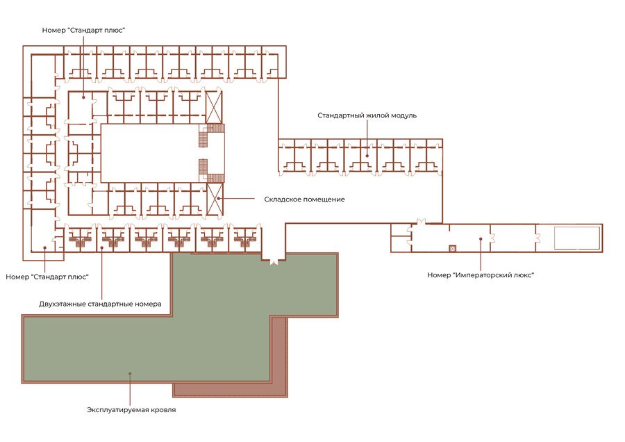Гостиница рассчитана на 60 номеров различных категорий, начиная от «Стандарта» и заканчивая «Императорским люксом».