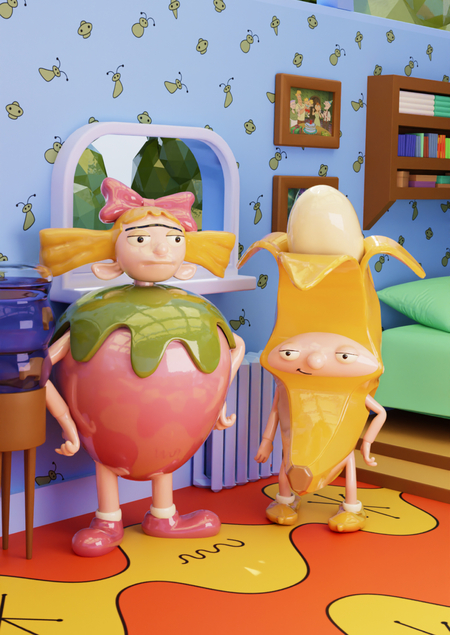 Чтобы усилить ностальгический эффект и погрузить зрителя в мир мультфильма, я решила разместить героев в комнате Арнольда.
