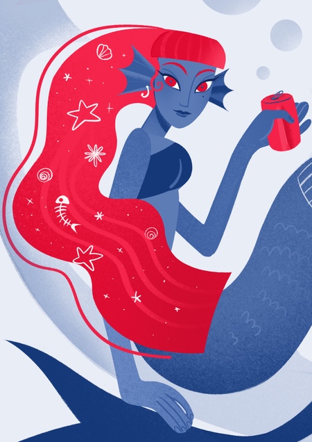 Цвета бренда Pabst ассоциируются у меня с тематикой моря. Именно поэтому в своих иллюстрациях я сделала акцент на антропоморфных мифических героях, связанных с водой.