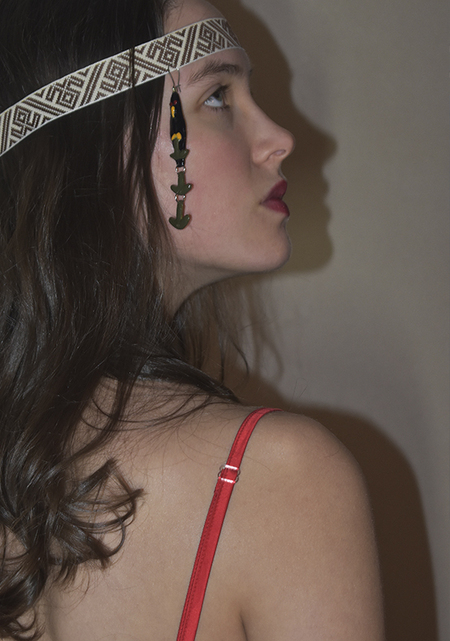 Все элементы украшений выполнены из латуни и покрыты эмалью. Детали подвижные, скреплены кольцами из латуни. Создано из скульптурного воска и воска в листах.