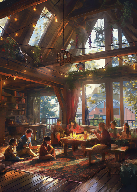 Prompt: Generate images of events and themed evenings held at «MixStudio». These could include 80s-themed parties, outdoor movie nights, or painting masterclasses.