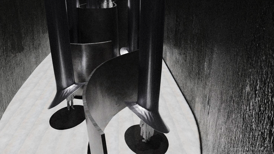 Архитектурное пространство представляет собой бионическую систему, адаптированную к паразитическому организму — червю Люминарии. Люминария, как симби-отический организм, формирует биомеханическую связь с архитектурой, где человек — эндосимбионт в замкнутом энергоресурсном цикле.