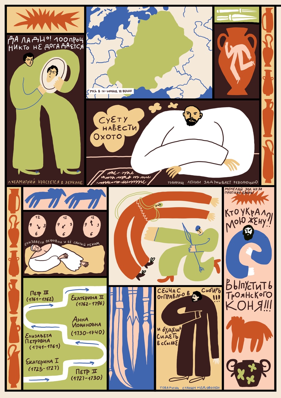 Проект создан для стилизации школы Армавира и состоит из 9 иллюстраций-муралов в разных вариациях.