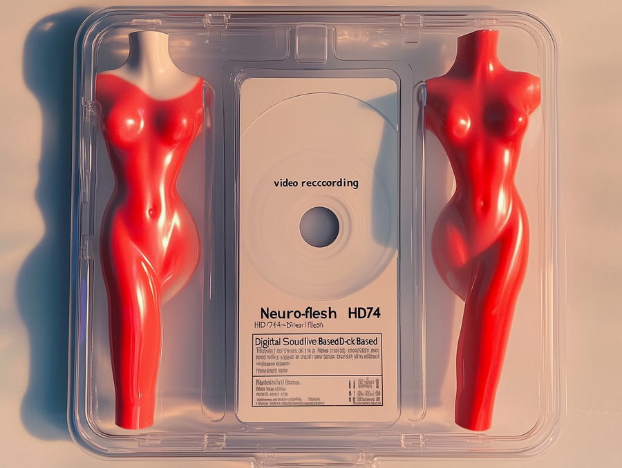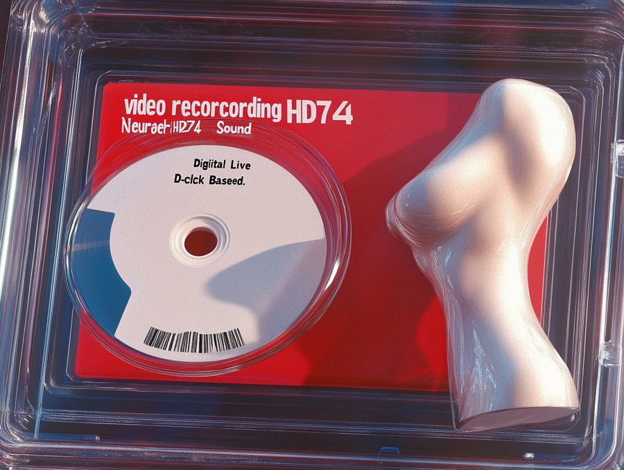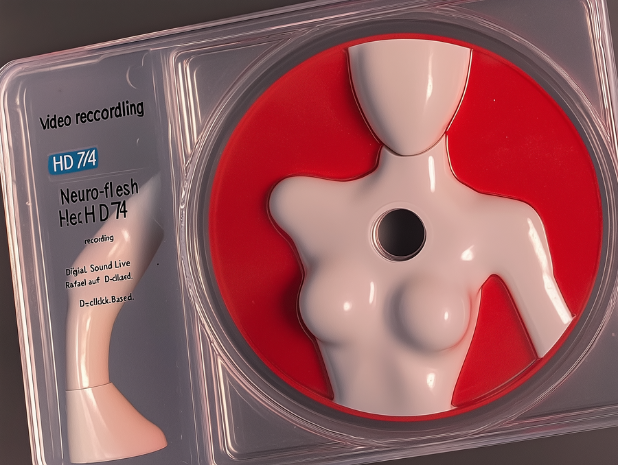 Промпт для диска: A photo of an original «video recording». The CD disk is in the transparent plastic case with a label on it that says «Neuro-flesh» and below there’s written text «HD74 Digital Sound Live Rafael auf D-click Based.» It has colorful red and blue stickers, photorealistic, high resolution, high detail, HDR, high quality.