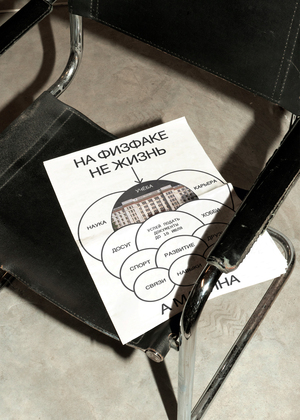 The design of the identics is based on a grid based on a geometric representation of the Chernkov-Valiv effect. This effect is important in the context of the history of the Faculty of Physical Sciences, as its justification led to the first Nobel Prize: Igor Tamm, Ilya Frank, and Pavel Cerenkov in 1958. However, the grid is not used literally — the style is based on arrows that represent the sequence and logic of physical processes.