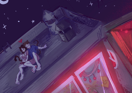 В данном городке тяжело найти укромное местечко, где никто не будет глядеть в окна твоей комнаты, поэтому эта влюбленная пара решила отдалиться от городской суеты и посвятить этот романтический вечер самим себе.