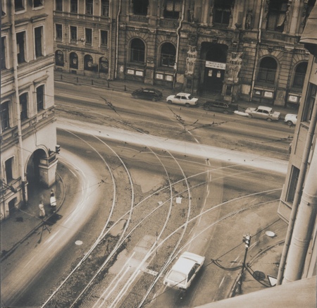 Вид сверху на Литейный проспект. Станислав Чабуткин. 1993 г. // Росфото URL: https://rosphoto.org/visit-online/collections/vzglyad-v-nebo/ (дата обращения: 09.11.2024).
