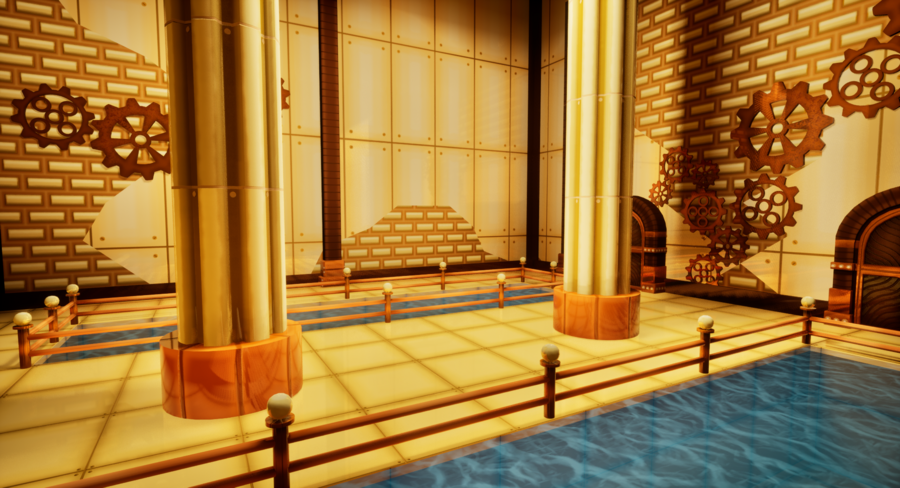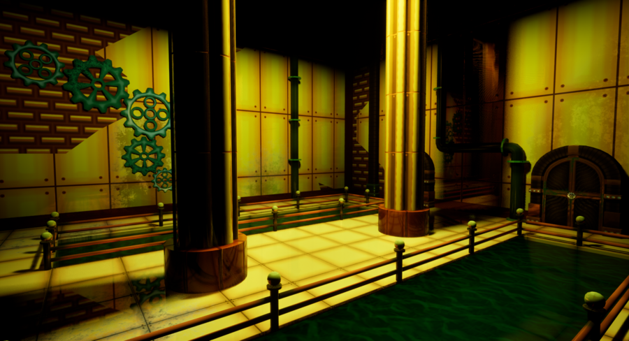 На среднем и самом глубоком уровнях данжа встречаются сломанные шестерёнки, упавшие части труб и следы окиси и повреждений.