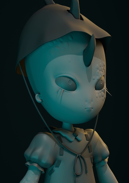 В течение учебного модуля была создана 3D-модель персонажа, отражающая изначальную концепцию.