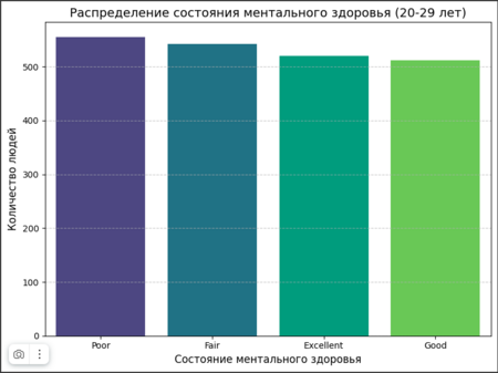 Программирование на Python помогает визуализировать информацию, выявляя закономерности и тенденции. Ментальное здоровье влияет на общее благополучие. С помощью программирования можно изучить, что влияет на ментальное здоровье (уровень стресса, количество сна и т. д.). Это позволяет глубже понять их влияние на поведение и физическое состояние, а также разработать стратегии для улучшения ментального здоровья.