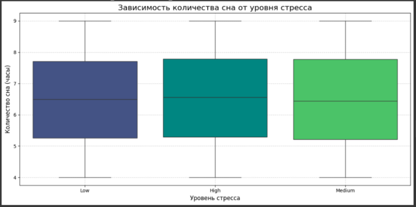Далее я решила проверить, влияет ли количество сна на уровень стресса.