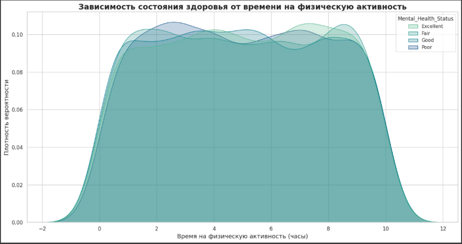 Мне захотелось проверить, действительно ли физическая активность положительно влияет на физическое и ментальное здоровье, поэтому я построила график.