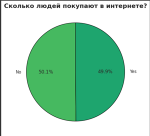 С помощью данных мы можем проиллюстрировать разницу между людьми, покупающими и не покупающими в интернете, с помощью круговой диаграммы.