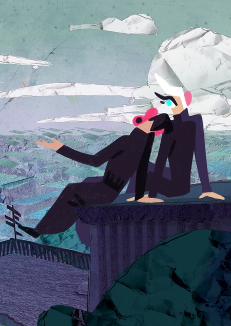 Выбор быть в дружбе с кем-то или предпочесть остаться по одиночке. Двое друзей с опаской тянутся друг к другу и, превратившись в рыб, существуют некоторое время в балансе, но в итоге их пути все равно расходятся.