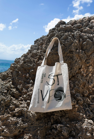 a design for notebooks with a stone cover inspired by the sculptures of artist Barbara Hepworth, with the inscription «The Road to St Ives», in Lotoush Semi-Bold font. the background is natural, imitation of seaside area