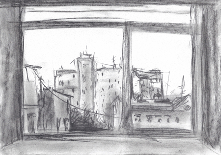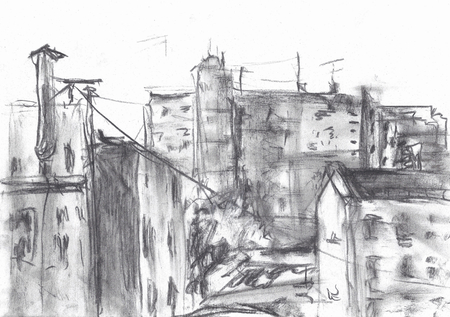 Серия представляет собой скетчи зданий и их деталей. Работы выполнены углем.