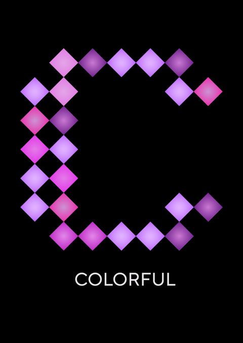 The font can also be located on a substrate of coloured rhombi, which are related in size to the rhomb-shaped elements of the letters.