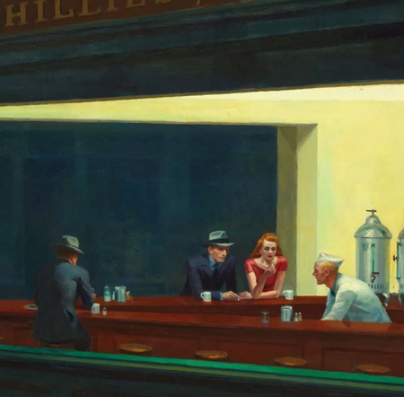 Повседневные сцены — гостиничные номера, городские кафе, пустынные улицы, окна квартир — становятся у Хоппера не просто бытовыми декорациями, а пространствами, в которых раскрывается фундаментальная человеческая тема — одиночество. Эти образы не кричат, не драматизируют, но в своей кажущейся нейтральности несут мощный эмоциональный заряд. Картины художника как будто запечатлевают момент между событиями, или даже в их полном отсутствии, — момент тишины, в котором рождается ощущение отделённости и внутренней пустоты.