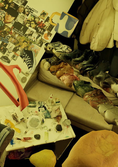 В этой работе я хотела показать как сильно меня угнетает вечный беспорядок, который я вижу каждый день. Планировка пространства во многом напоминает мою квартиру, которую я делю с соседями.