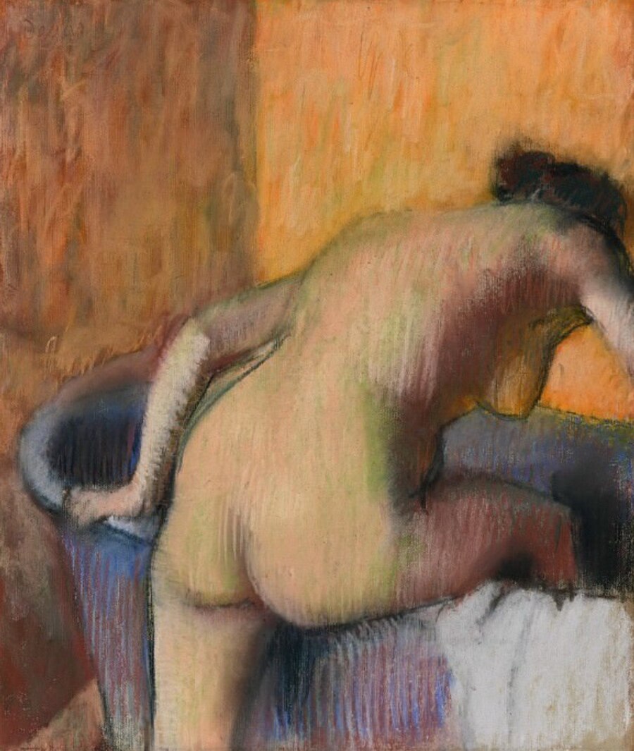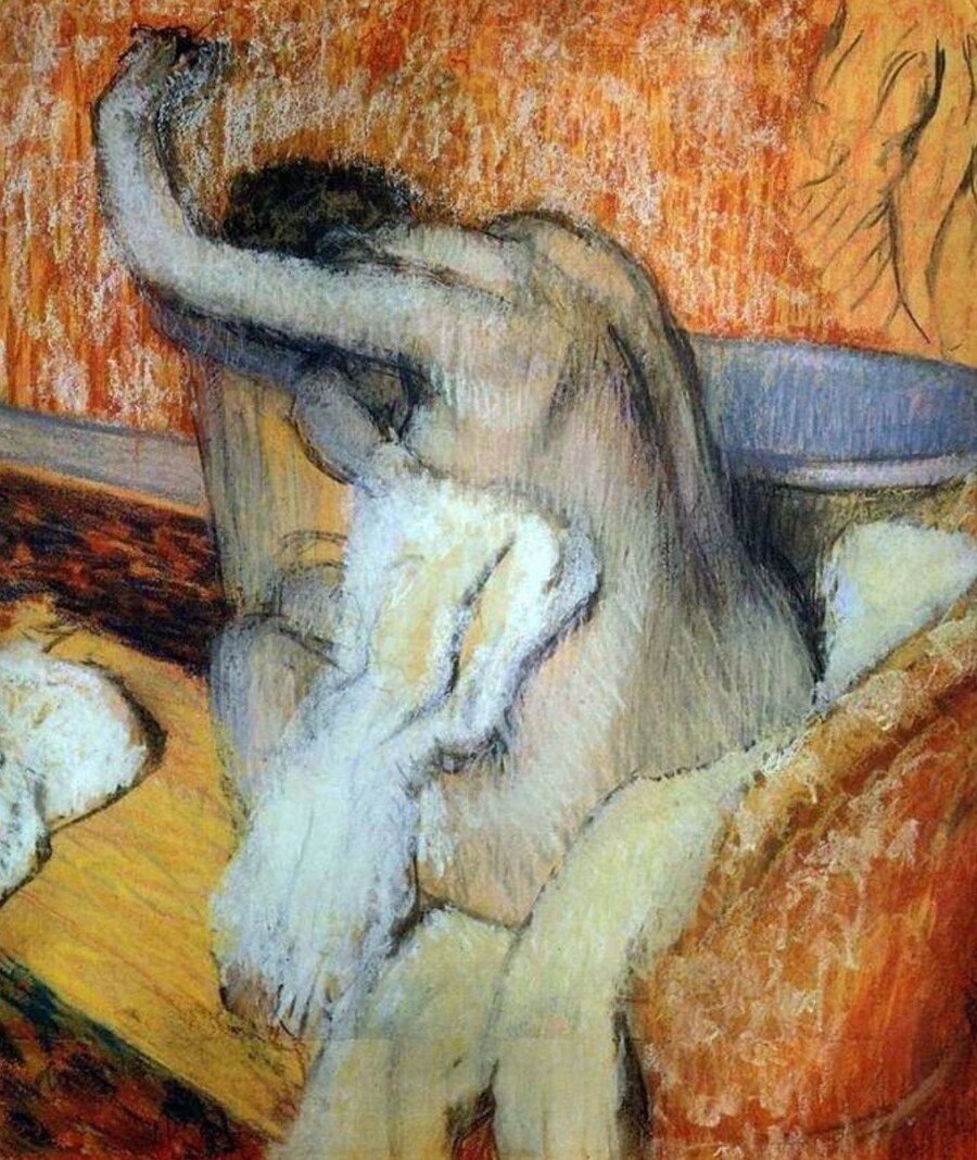 Благодаря композиции картин Дега удаётся передать всю красоту обнажённого тела даже в повседневном окружении. Стоит отметить, что по сравнению с европейским искусством, японское было гораздо более открытым к изображению обнажённой натуры. Серию картин с купальщицами европейское общество сочло жутко скандальной.