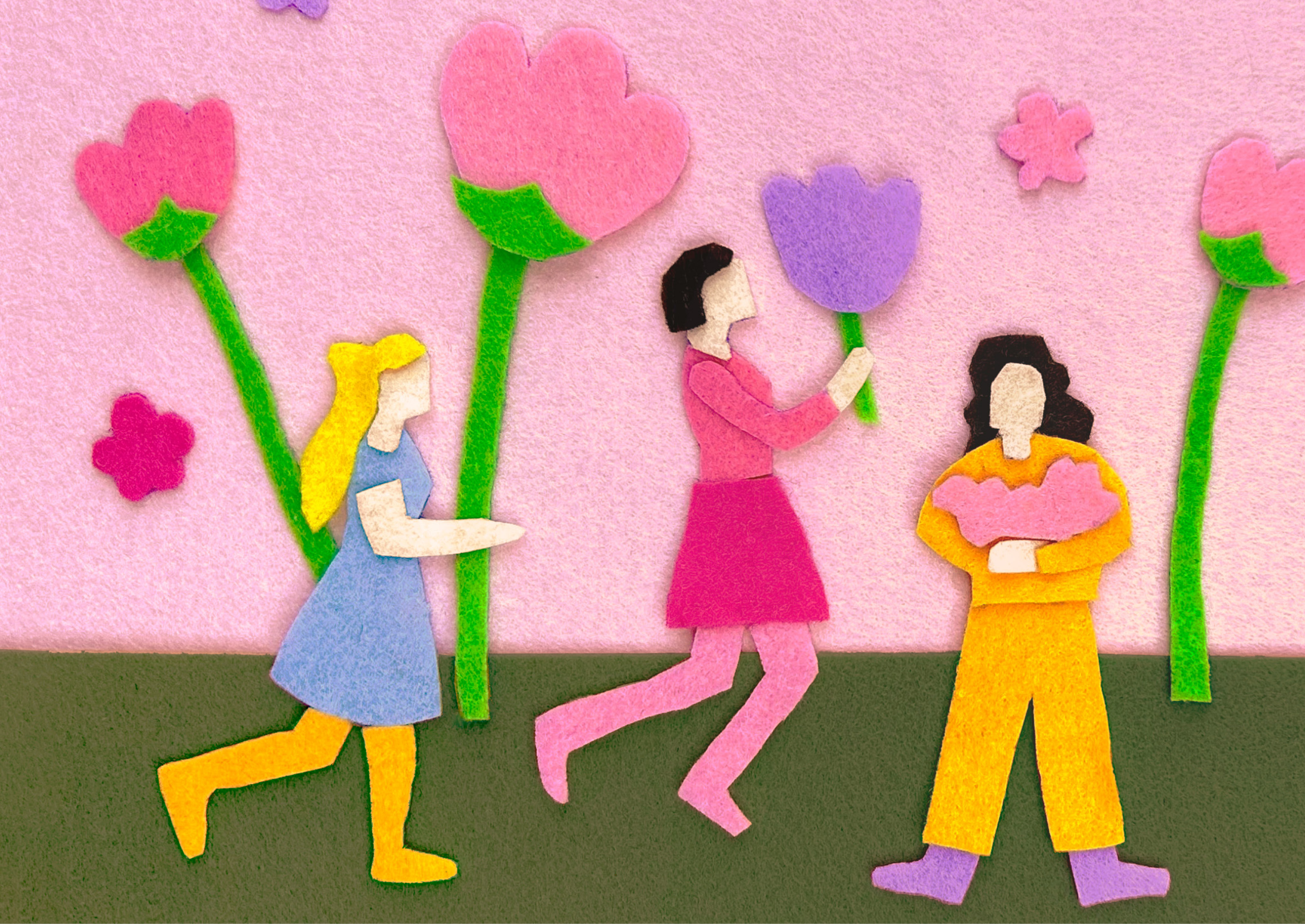 В качестве материала выбран фетр, как символ уюта и тепла. Иллюстрации состоят из радостных человечков и их приключений.
