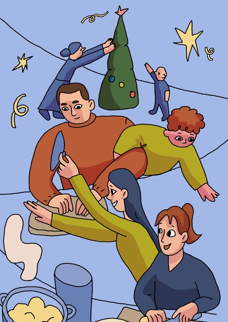 Серия праздничных кей-вижуалов для корпоративной коммуникации ГазПромНефть. Главная идея — важность человеческих взаимоотношений. Иллюстрации выполнены в нежном стиле, передающем тепло и заботу.