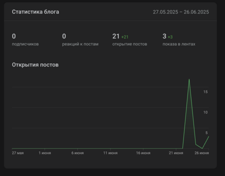 Выводы из данных и варианты исправления: продолжить поиск инструментов продвижения, например, попробовать внедрить хэштеги, актуальные можно выявить с помощью нейросети, создавать контент на более широкую аудиторию, к статье генерировать цепляющие интересные картинки/видео, чтобы привлечь внимание читателя.