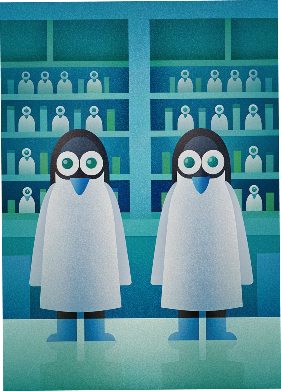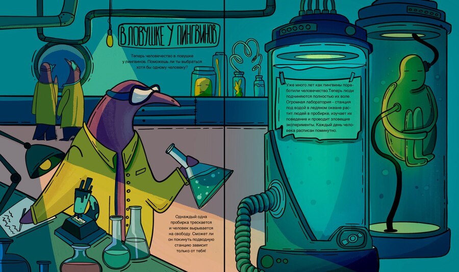 В этой лаборатории они выращивают людей в пробирках и изучают их поведение и возможности. Теперь жизнь человека протекает под строгим надзором пингвинов