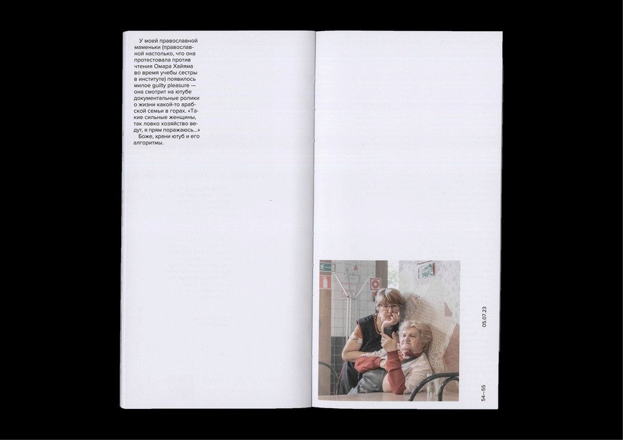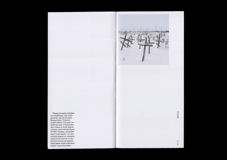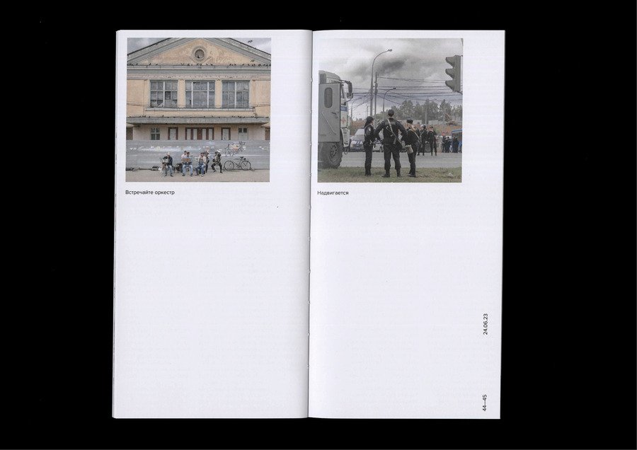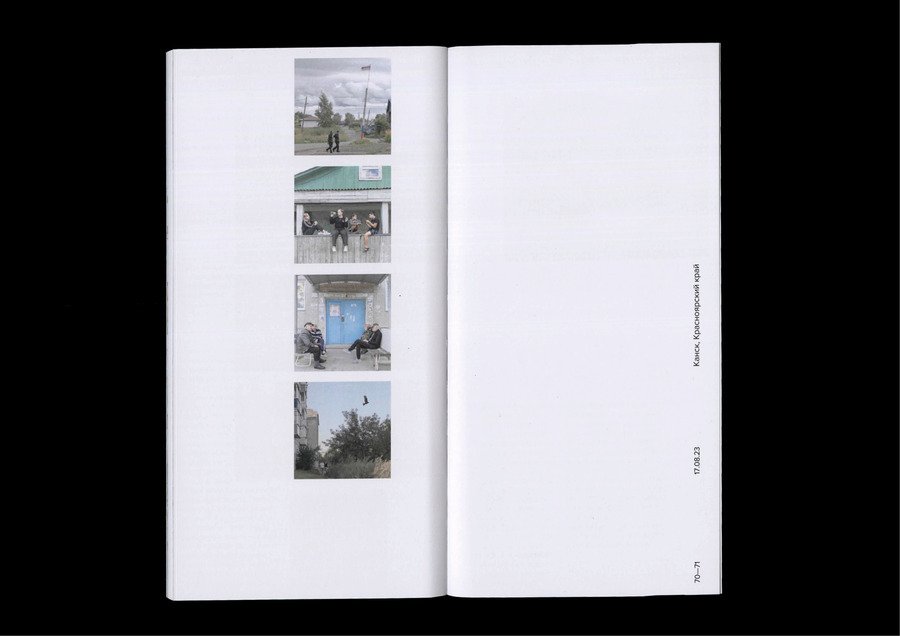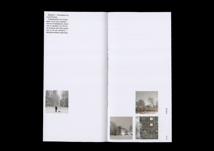 В каталоге представлены работы фотографа Дмитрия Маркова вместе с его записями к фотографиям из социальной сети. Представлены работы с декабря 2022 года по декабрь 2023 года. Благодаря записям мы можем познакомиться не только с творчеством автора, но и с его личностью. Квадратный в развороте формат выбран для поддержания гармонии с квадратными изображениями.