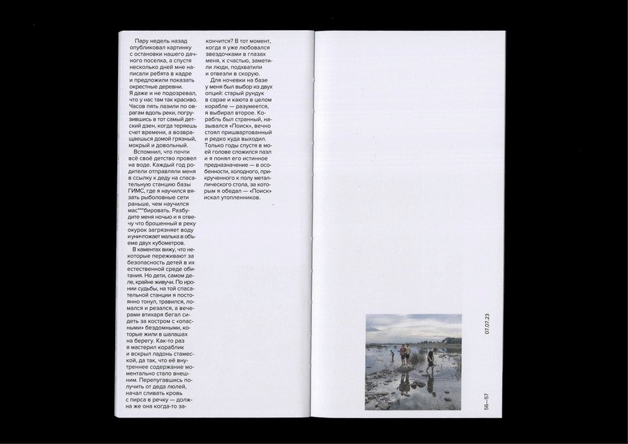 Для текста выбрана верстка в 2 колонки, для фотографий — в 1 или 2 колонки в зависимости от размера фотографии. Шрифт: Proxima Nova Regular 115×230 мм переплет: мягкий (обложка: 3-х сгибная) 120 полос