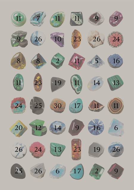 В работе используются камни и минералы, которые создал искусственный интеллект. Можно увидеть несуществующие артефакты. Изображения получились в общей стилистике.