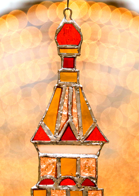 Первая работа выполнена в форме звезды и может использоваться в качестве ёлочной игрушки. Вторая работа является витражной интерпретацией Кремля и состоит из трех отдельных башен храма Василия Блаженного.