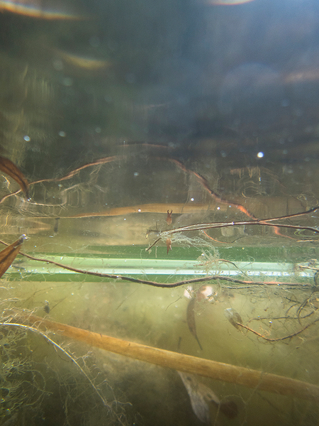 The second video projection is located next to the aquarium and supports the shape and scale of the aquarium as well as parts of the large fractional image.