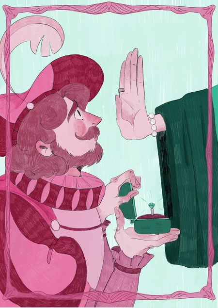 Серия иллюстраций к английской балладе «Зелёные рукава» в переводе С. Маршака о неразделенной любви. На протяжении года знатный господин преподносит загадочной леди в зеленом платье подарки, но та всё равно его отвергает. Каждый новый месяц раскрывает кусочек истории.