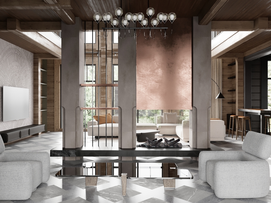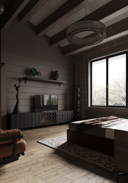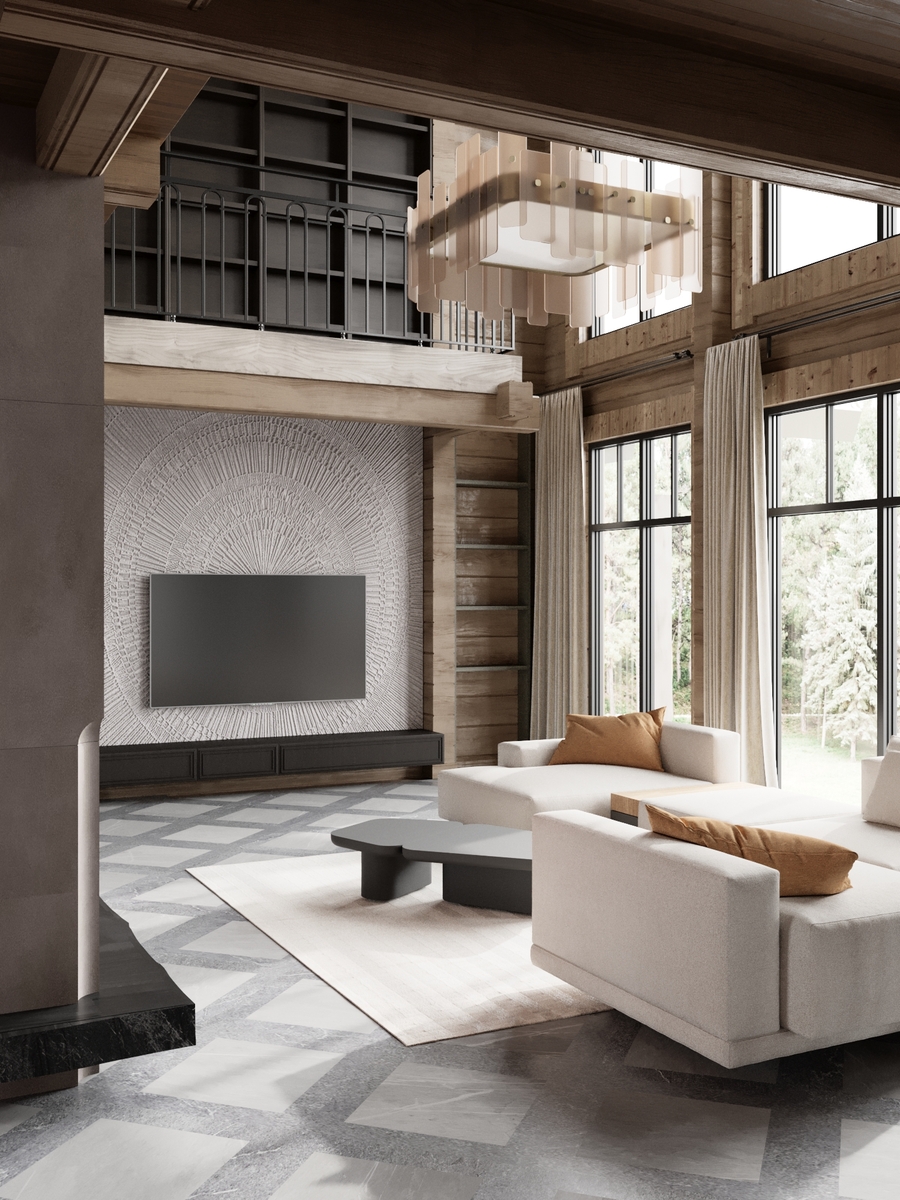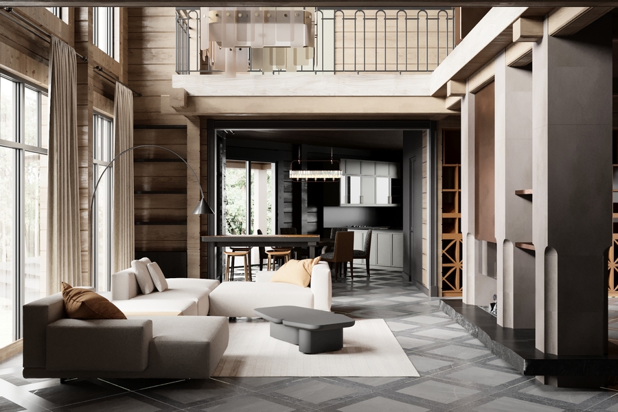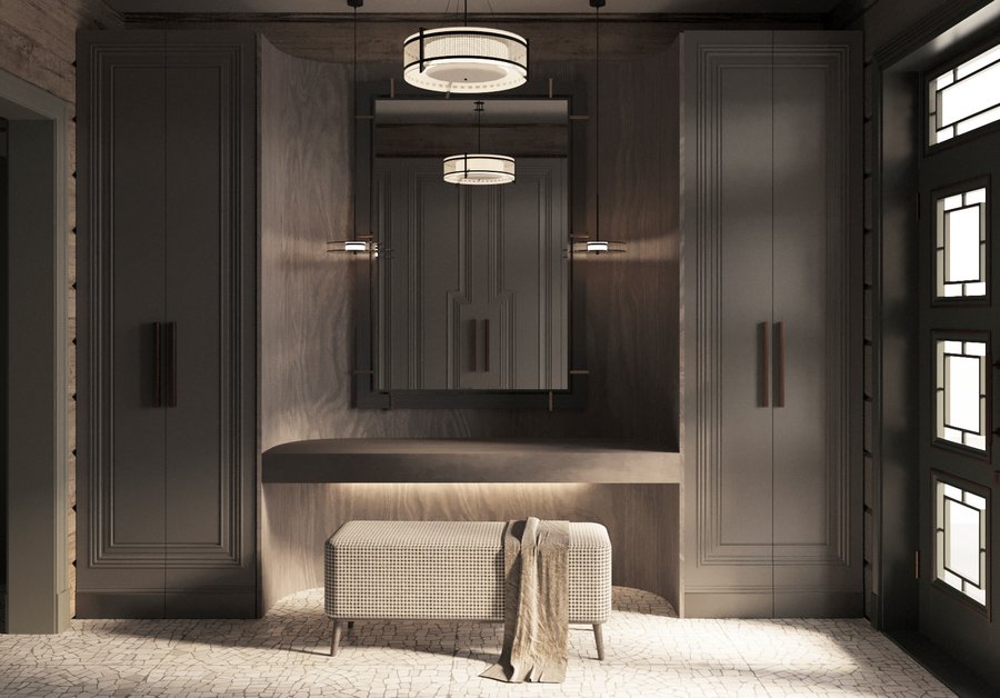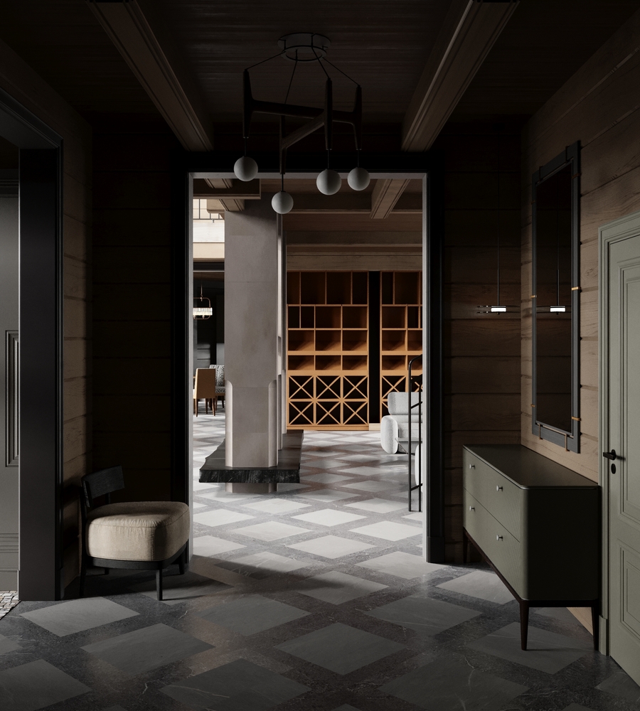 Проект интерьеров дома из клееного бруса в живописном посёлке в Тверской области. Баланс между классикой и современным дизайном.
