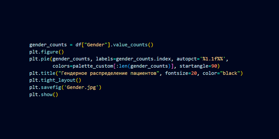 Гендерное распределение пациентов (круговая диаграмма): Демонстрирует соотношение мужчин и женщин в исследуемой группе.