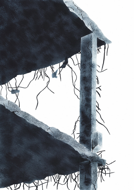 Стены домов, покрывшиеся плесенью и трещинами, разбитые ступени крыльца, треснувшие оконные стёкла и заброшенные стройки — всё это нашло отражение в моих иллюстрациях. Обветшалые здания являются важной составляющей городского беспорядка, и мне кажется, что даже в таких, на первый взгляд, непривлекательных строениях можно увидеть красоту, ведь за каждым из них стоит уникальная история.