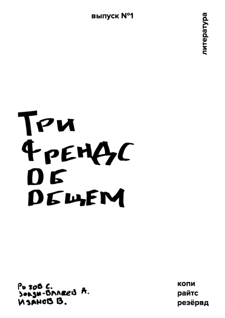 Собрались как-то три школьных друга в баре. Придумали зин. Рассказали про фаллические символы, литературу, философию, друг друга, дизайнера Андрюху и про себя любимых. Как всё уместили? Давайте читать вместе. Вышло долго, но чтиво заманчивое.