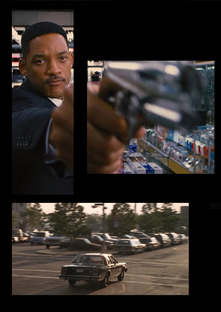Материалы для перемонтажа выбраны из-за сходства костюмов героев «Людей в чёрном» и «Криминального чтива». Микс криминальной драмы с персонажами фантастической комедии создаёт пародийное высказывание. Целью было исключить инопланетян из исходного материала для создания более приземлённого тона.
