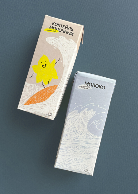 The eating of dairy products is becoming an entire body of emotions that a child shares with his or her parents. Milk cocktails and yogurts come to life, turning into brilliant characters. These images refer to fairy tales when the lines read by the parents live in children’s fantasies. The line consists of two types of milkshake, milk and two types of yogurt.
