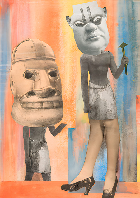 Лица на работах Хёх чаще всего созданы из множества разных составляющих: глаза могут быть от фарфоровой куклы, нос — от картины эпохи Возрождения, а улыбка — из обычной газетной рекламы. В такой многогранности элементов лица начинают отрываться от силуэта и мыслиться как надетые поверх маски.