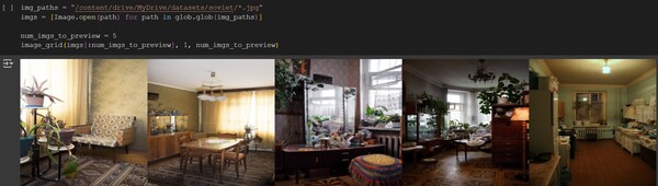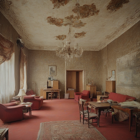 По этим изображениям можно сказать, что модель хорошо научена гененрировать изображения в советском стиле. Гостиная получилась гармонично, мебель хоть и выглядит порой немного странно, но суть передана правильно.