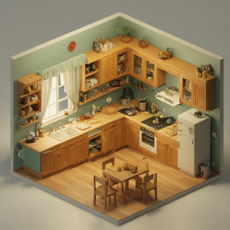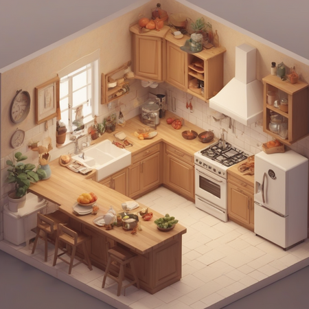 prompt = «SOVIET style, ISOMETRIC style, kitchen» # @param