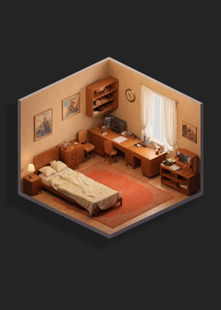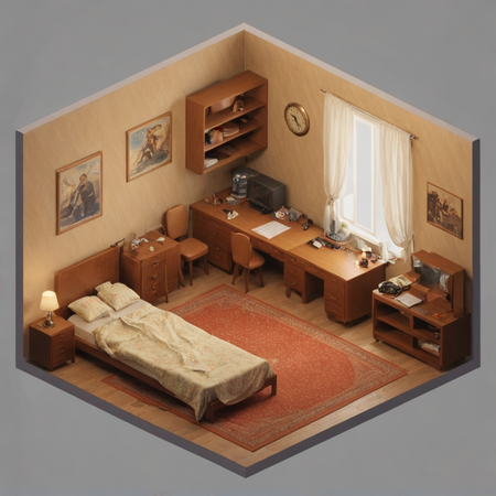 prompt = «SOVIET style, ISOMETRIC style bedroom» # @param