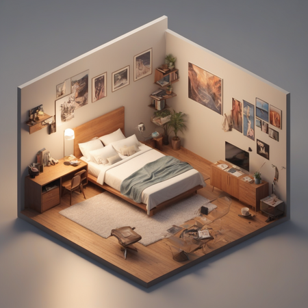 prompt = «photo collage in ISOMETRIC style, bedroom» # @param