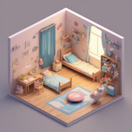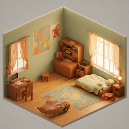 prompt = «ISOMETRIC style, children’s bedroom» # @param