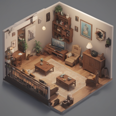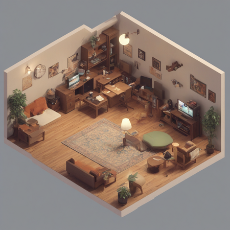 Изометрия, как способ отображения объектов и пространства, представляет собой форму проекции, где сохраняются пропорции, и можно увидеть пространство в объеме. Этот подход идеально подходит для создания интерьеров, так как позволяет точно представить, как различные элементы — мебель, текстуры, декоративные акценты — взаимодействуют между собой в ограниченном пространстве. Используя нейросеть для генерации изометрических изображений, можно получить точные и детализированные концепты, которые помогут на ранних этапах разработки интерьера «примерить» различные дизайнерские решения и их комбинации.