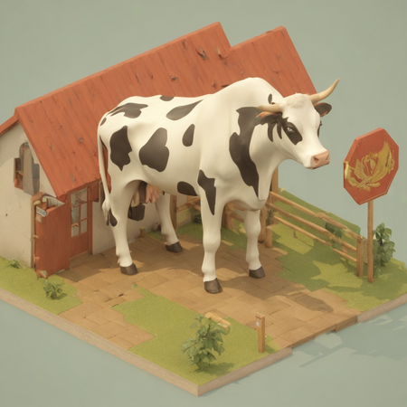 prompt = «SOVIET style, ISOMETRIC style, a cow» # @param