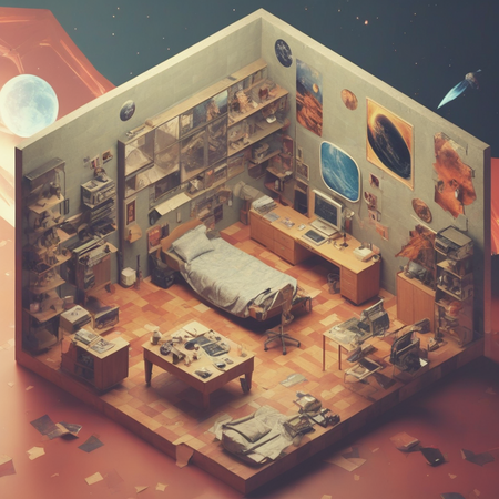 prompt = «photo collage in SOVIET style, ISOMETRIC STYLE, space room» # @param