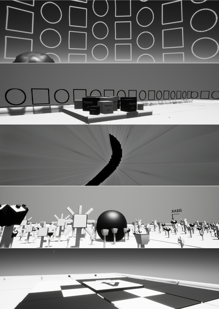 Игра в виде 3D сканворда, в которой вместо вопросов предлагается пройти несколько тестов. Результаты пройденных тестов материализуются и в разной степени влияют на пространство игры